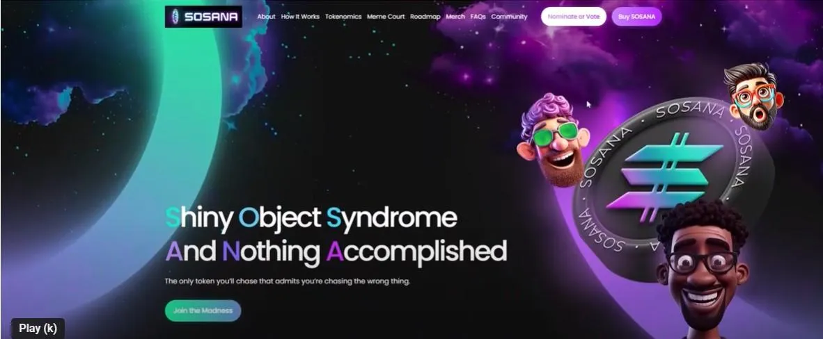 What sets SOSANA apart is its innovative, community-driven voting platform. Instead of just holding and hoping, users actively participate by researching and nominating promising "shiny object" tokens.